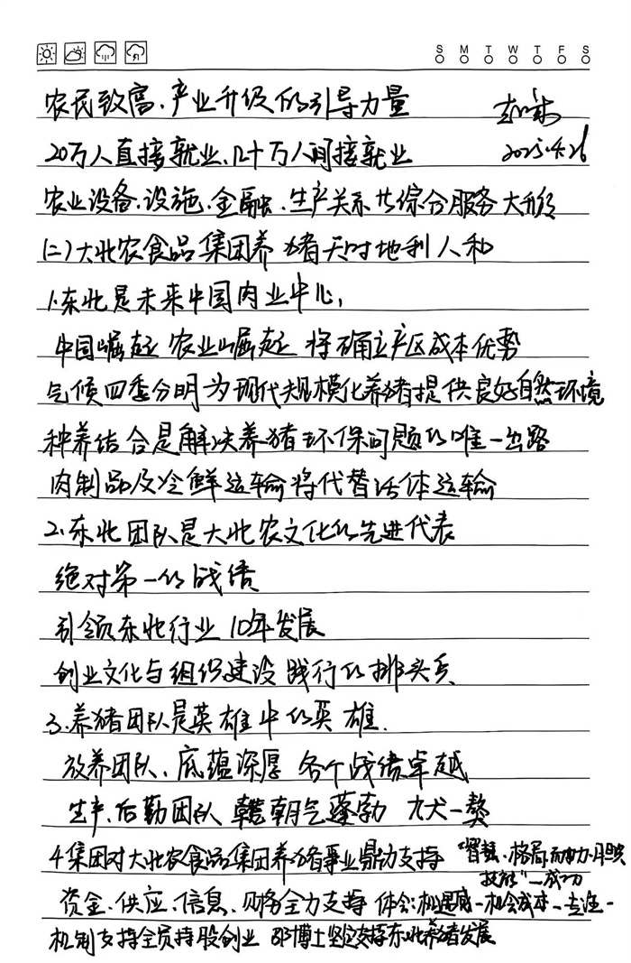 為進一步營造文化氛圍,凝聚全員力量共慶創(chuàng)業(yè)十周年,大北農食品集團于4—5月組織全體創(chuàng)業(yè)者開展“文化月”活動。2025年4月14日—5月4日,“抄寫文化”活動如火如荼展開。在為期21天的活動中,全體創(chuàng)業(yè)者以筆墨為媒,讓文化的力量在筆尖流淌,在紙間綻放!